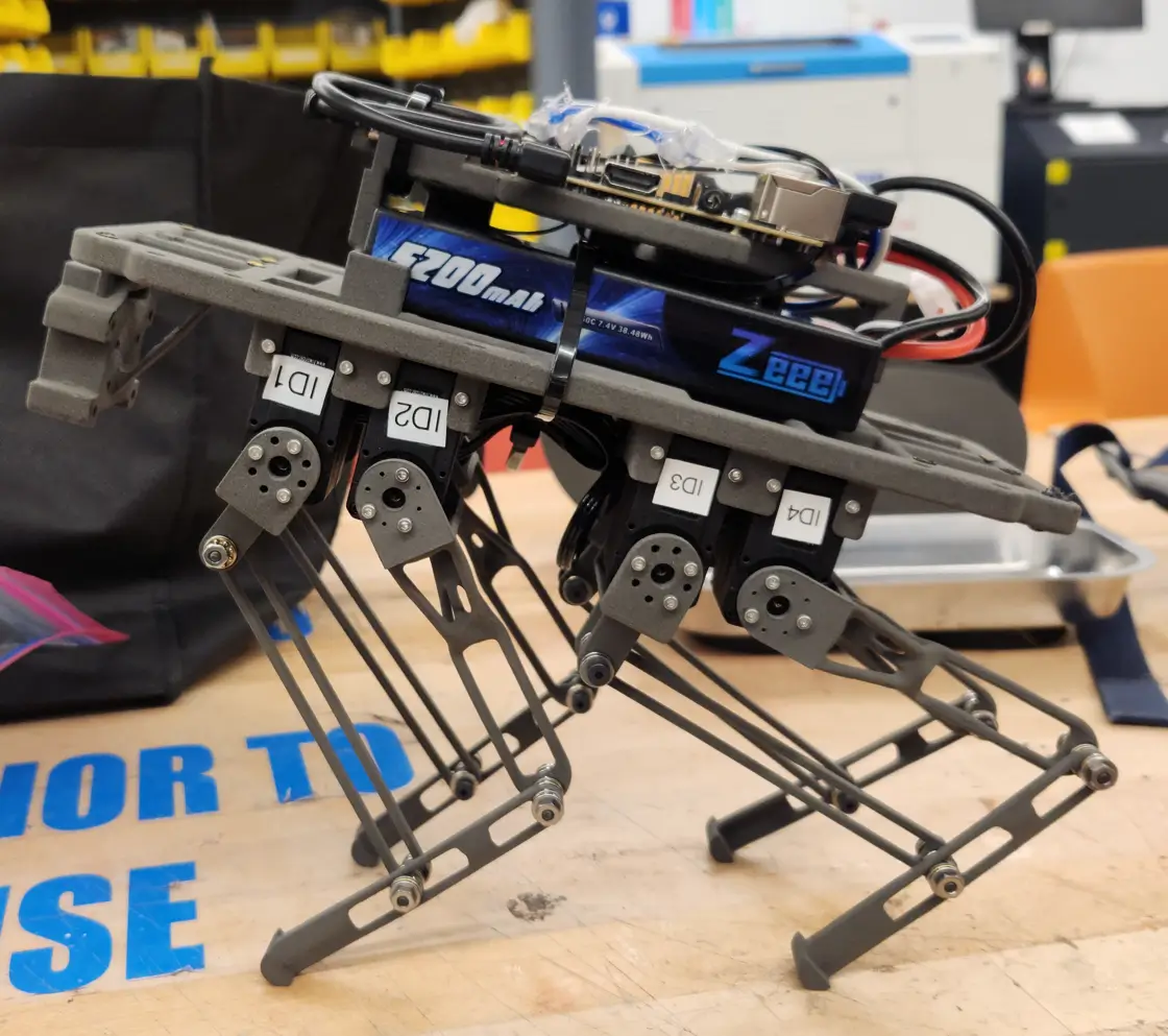 A walking four-legged robot made almost completely with a nylon sls printer. Uses reverse kinematics to walk in a stable manner